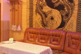 Интерьер на 4, но при этом чисто. Парилка просторная. Купели нет, есть ведро с веревкой. Кому чисто попарится, без излишеств, за такую небольшую цену в самом центре, то баня вам подойдет.