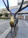 Интересная скульптура, подарок руководителю университета. Среди студентов бытует мнение, что если лосю потереть нос, то успешно сдашь сессию. Сын проверял-работает!