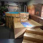 Финская сауна с бассейном, можно выставить определённую температуру в парилке по вашему желанию. Есть парильщик, работает по записи.