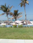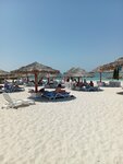 The beach is comfortable and comfortable. The price is 75 dirhams for admission (August 2025). If you go out, you will have to pay for the beach again. Lots of umbrellas, sun beds, mattresses. The shore and the water are clean. The pool is of good depth, there is a Jacuzzi with cool water, an outdoor shower and a bathroom with a shower, a hairdryer in the building if you need to change clothes. For a fee, drinks, food. It borders a private beach through a fence, which does not interfere with enjoying your vacation.