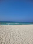 The beach is clean, the sand is white, the sea is azure. Lifeguards work on the beach when the waves, they put up a red flag and forbid hotel guests to swim. When we were resting, in good weather, one old man became ill in the water, rescuers reacted quickly, pulled the man out of the water, gave him first aid. Everything is very smooth and fast. There are sun loungers and umbrellas on the beach. There is a shower to wash off the salt and go further to get high in the pool. In the morning, water aerobics is carried out in the pool. Overall, a nice beach. Not much was confused by the fences with which it is fenced around the edges. The fence made it difficult to watch the sunset.