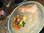 The music and atmosphere are among the advantages. About the food: steaks were brought, only the name of the steak is here) They didn't even roast it, they just held it in the grill and that's it) It also didn't smell very good, as if it was spoiled, no one ate it.… There were only a couple of mushrooms and a cucumber with pepper from the grilled vegetables.) The shrimp salad was good, the appetizers were also good, but the steak was very upset) it's not worth 30p. I would like to draw attention to the staff: there was one waiter at three tables, which is why our empty plates stood for a long time and the dishes were carried for a long time. An unpleasant impression remained from the guard, who treated him somehow arrogantly, with contempt. Unfortunately, I still have negative impressions of the place!