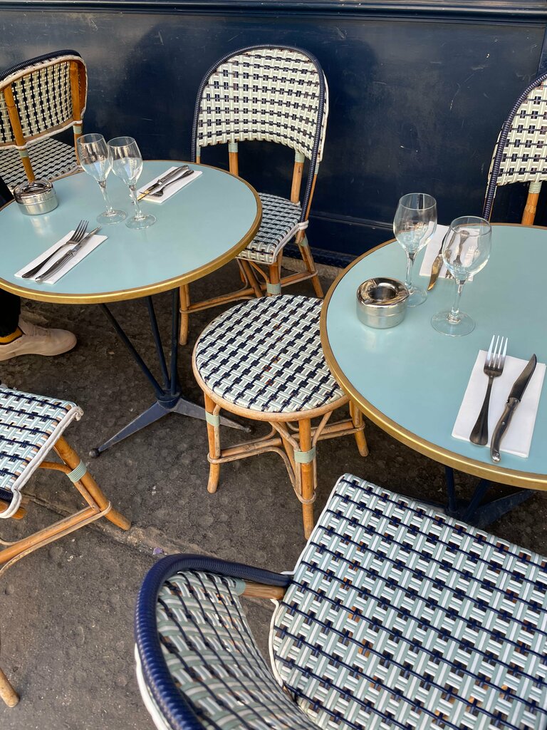 delicious coffee and champagne in beautiful cream bowls. it is very pleasant to stay here and sit with a glass, in the very center of Paris, close to the streets with shops