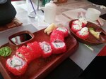 Роллы мне понравились! Калифорния - хорошая, темперных роллы - нежные и хрустящие, запеченые - вкусные, но немного жирноваты. Чуть-чуть подвёл интерьер! Но то что зайду ещё - это точно!