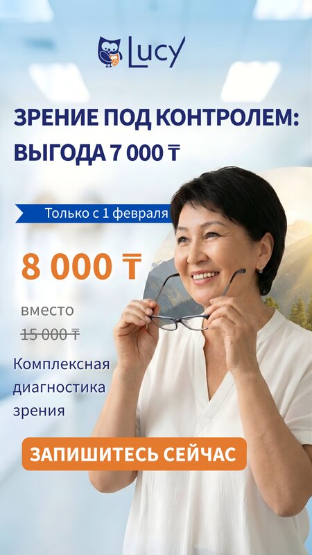 We have been undergoing examinations at the Lucy clinic for 1 year. Zhansaya Arapbaevna we get a consultation with an ophthalmologist, everything is clear, we quickly communicate with children and find a language. Cheplevskaya Y. The Doctor selected Stella glasses for my daughter, she finds the child's tongue well. The operators of the clinic are very good, the services are excellent, without haste they explain everything and answer all questions. Druzhenin thanked the ophthalmologist surgeon, the laser incision was very easy, my eyes came to their senses quickly, my eyes are now loved thank God. Inside the clinic is clean, beautiful, comfortable. All conditions are created for children. By the time it is written, everything will pass quickly enough.