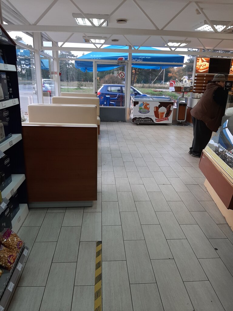 Выпечка и френч доги очень вкусные, персонал приветливый, но всё время чем то занятый , уборкой , выкладкой, приёмом топлива и т.д.Нет салфеток и перчаток на колонках, АЗС давно просит реконструкции!!!! Куда смотрит такая богатая организация??? В наше время такая устаревшая заправка.