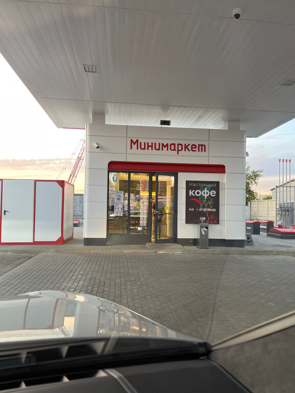 Хорошая заправка. Удобно залить бензин в любую погоду. Вежливые сотрудники. Всегда предлагают кофе. Можно оставить чаевые. Она сюда аккуратно заезжать и выезжать, смотря на дорожную Разметку. Потому что тут иногда дежурят гаишники