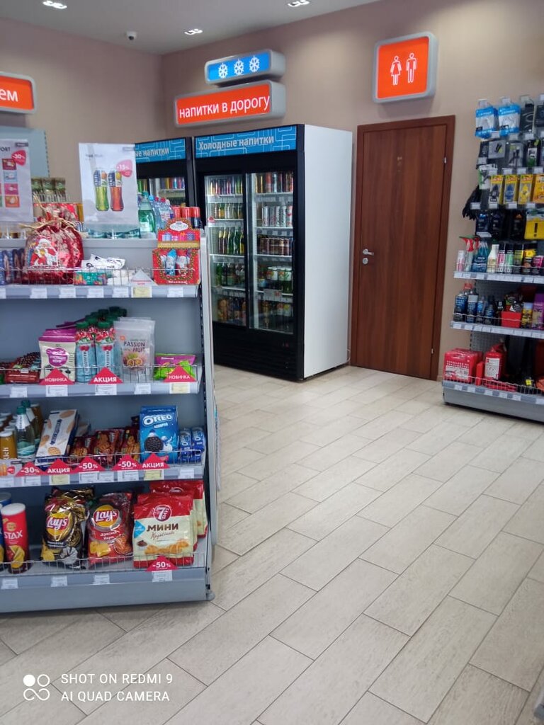Маленькая, уютная заправка. Чистый туалет, вкусная еда и очень вежливая девушка, которая встречает добрым словом