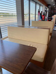 Хорошая заправка. Есть детский уголок. Но в туалетах пахнет, туалетных кабинок много. Народу немного.