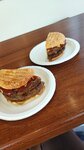 Покупали двойной чизбургер. Очень большой и вкусный и вежливые кассиры. Чистые туалеты. Спасибо.