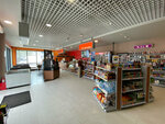 Удобное расположение, отзывчивый и вежливый персонал, работает чистый туалет, можно выпить чашечку кофе, перекусить и приобрести необходимые сопутствующие товары, напитки и продукты. Цены дешевле, чем в Москве.