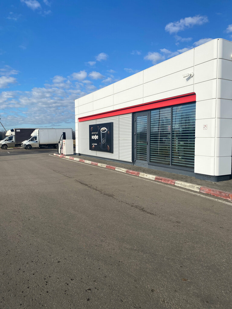Довольно часто заезжал на эту заправку. Хорошее обслуживание, качество топлива на высоте - подтверждено проверками в лаборатории и личными заправками. Стандартный набор продуктов в магазине/кафе, плюс-минус также по вещам в дорогу (автохимия, щётки и т.п.). На территории имеется компрессор для подкачки шин - это плюс. На заднике от здания заправки - небольшой летник с зонтиками, но, как правило, спокойно посидеть там может не получится так как вокруг поля и гуляет ветер.