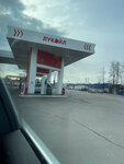 Обычный лукоил, маленькая заправка, мини магазинчик, но есть большой кофейный аппарат, не очень чистый туалет и вежливый персонал