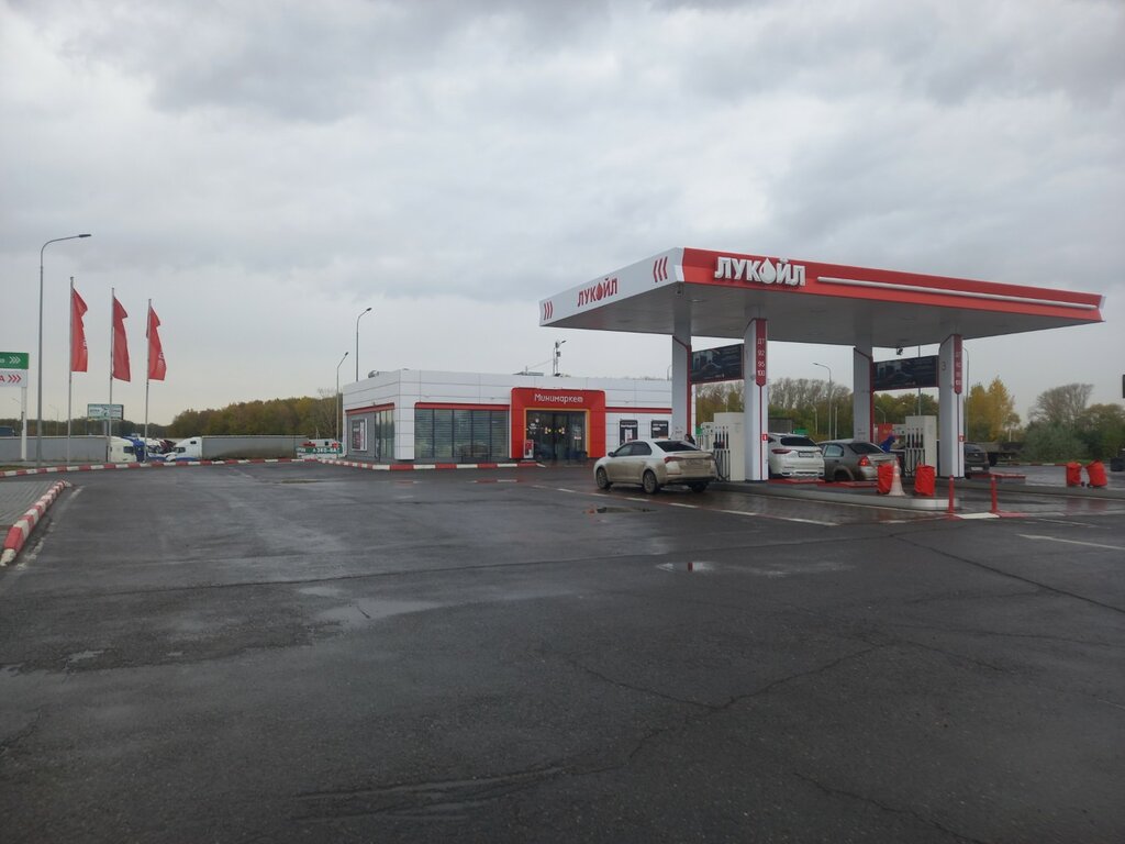 Очередная хорошая АЗС от Лукойл. Как всегда есть кафе, где можно как купить готовую выпечку и сэндвичи, так и заказать гамбургеры, чизбургеры, хот-доги, фрэнч-доги, картофель фри, наггетсы, крылышки, хэшбрауны. Есть магазин с автохимией и аксессуарами для авто. Туалет чистый. Рядом с АЗС много различной полезной инфраструктуры и есть где поставить фуры.