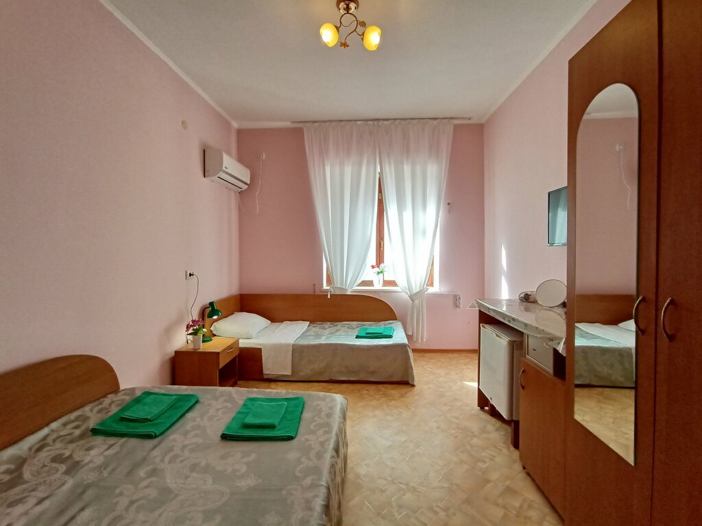 Отдыхала в данном гостевом доме в августе этого года. Для бюджетного отдыха очень хороший вариант. Отдыхала одна, но заселили меня в 3х местный номер. В номере уютно, удобные кровати, кондиционер, вентилятор, телевизор, фен, маленький холодильник, одним словом всё самое необходимое есть. До моря близко, и оно в Береговое замечательное. Отдельно хочется отметить хозяев дома: очень милая, приятная супружеская пара. Григорий Львович при заселении и при выезде помогал с сумками, Татьяна Ивановна угощала спелыми фруктами (арбузом, инжиром, грушами). Если буду в тех краях, обязательно выберу для отдыха данный гостевой дом👍