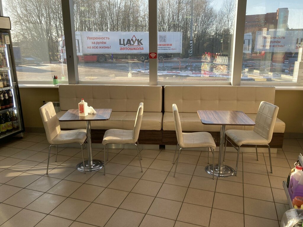 It is very convenient for leaving the city. The staff is tactful, not intrusive in moderation. If you express all your wishes at once, you will get what you want in a few seconds, namely the fuel you ordered and the purchased goods in addition!