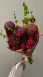 Яркий авторский букет с диким характером с гортензией и синими диантусами