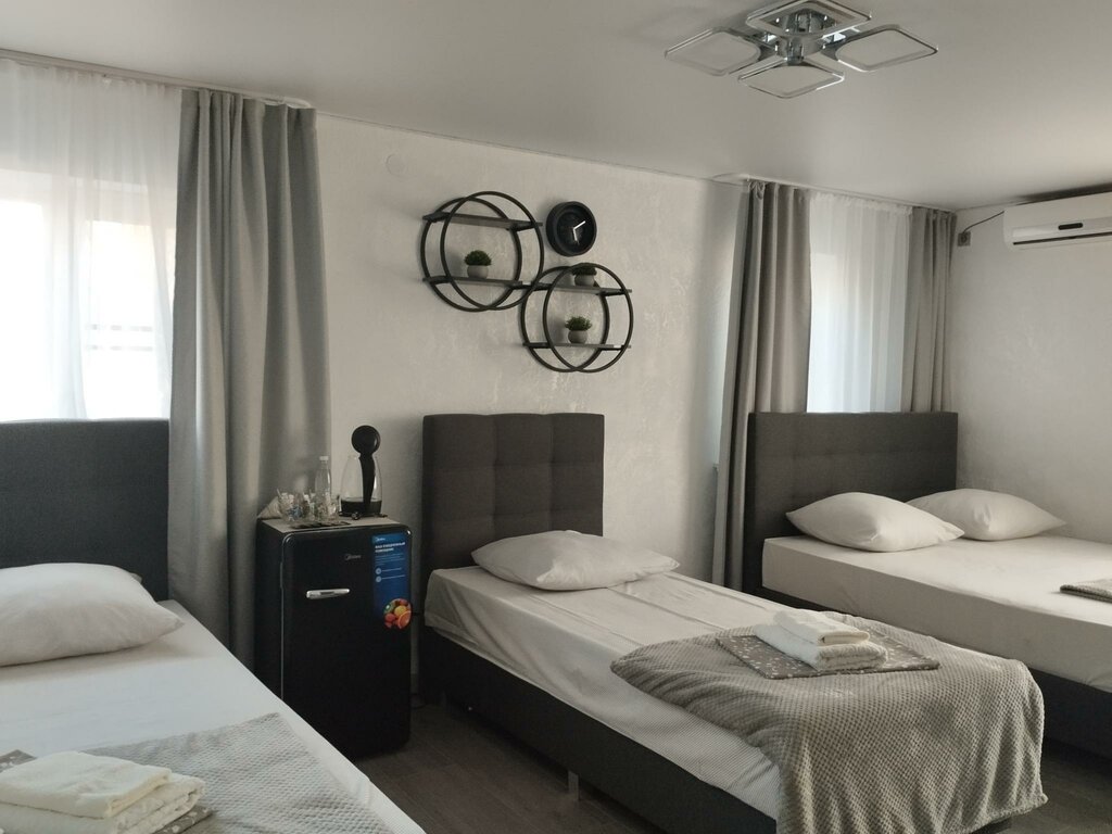 Остановились тут по пути на море. Отель превзошел все наши ожидания: чистота, порядок, новый ремонт, чистенькое белье и полотенца, вежливые сотрудники. Быстро оформились и заселились. Также большой плюс,что рядом магазины, в том числе Пятёрка, КБ. Есть очень классное кафе через дорогу, где обалденно вкусно и приемлемо по цене. Это из плюсов. Но есть и минусы ( за них не буду снижать баллы:)): Хотелось бы ещё, чтобы была угловая полочка возле душа для шампуней:) И ещё ступенька на втором этаже домика с открытой лестницей чтобы была обозначена цветом, иначе ночью можно споткнуться. А так в целом всё отлично, ставлю пять звёзд 👍