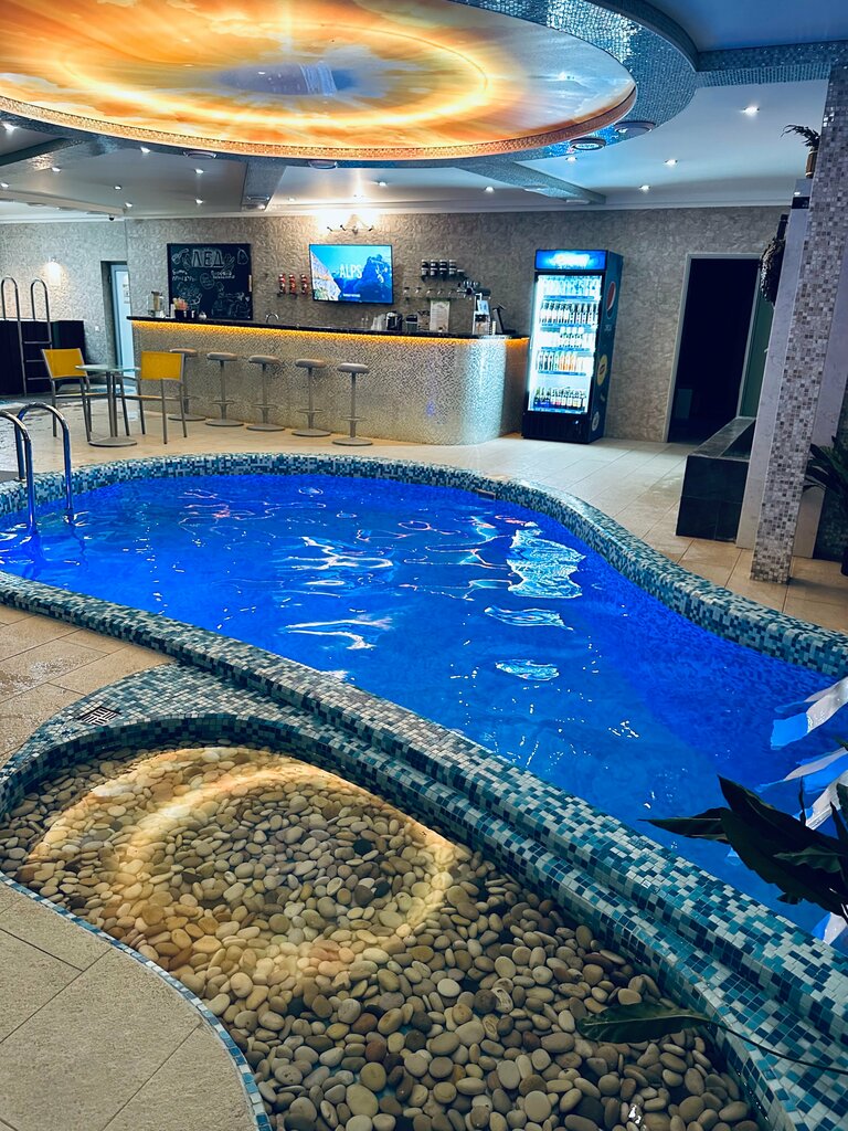 Очень понравилось, хамам шикарный, достаточно большой с портиком и фонтанчиком выполненным в виде родника, приятный ненавязчивый аромат и звучащие мантры, как и в аромокомнате, располагают к релаксу, русская парная и финская сауна, тоже порадовали, бассейн половина на улице, купель с холодной водой и джакузи тоже порадовали, хотя в джакузи было грязновато, поэтому мы не рискнули, но там до этого барахтались толпа дети, поэтому это объяснимо, нам с женой понравилось, в общем и целом и еда приличная, бесплатно вода с лимоном, причем лимон не экономят, короче рекомендую