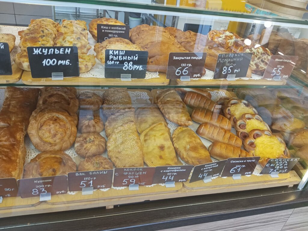 Всегда свежий хлеб. Так как свой пекарский цех, выпекают немного, чтобы не задерживался хлебушек. После 18.00 продают со скидкой. Правда, можно прийти к полупустым витринам, потому что очень вкусный и свежий хлеб, пирожки и булочки. Есть столик, чтобы попить кофе или чай с булочкой. Кстати, кофе из кофемашины, а нр бурда растворимая. Стараются украсить помещение к Новому году, например, чтобы было уютно. Персонал приветливый. Есть безналичный расчёт.