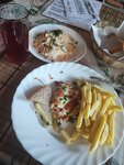 Место для парковки буквально на несколько машин. Туалет чистый. Меню неплохое, набор привычных блюд. Сразу поразил размер порций: салата много, майонеза немного перебор. Второе тоже полная тарелка, тоже многовато сверху сыра и майонеза. Сытно. Соответственно цены не самые низкие.