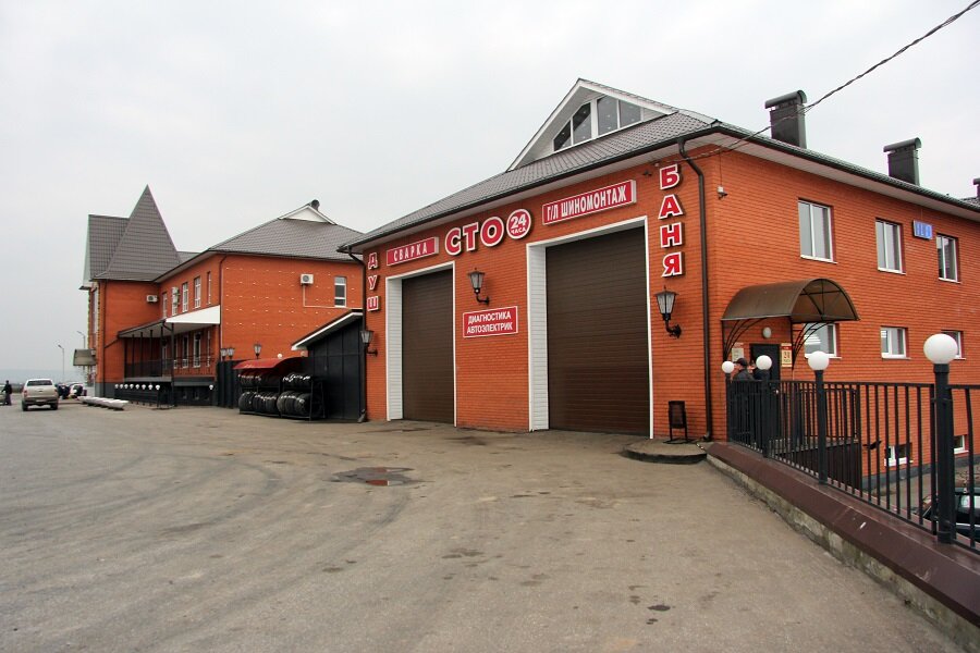 Отличный придорожный комплекс! Круглосуточный автосервис и шиномонтаж. Пока машина в ремонте, можно покушать или принять душ. Также есть два магазина автозапчастей, одежды, сувениров и рыболовный отдел. Персонал очень гостеприимный и доброжелательный. Есть уютная гостинница.