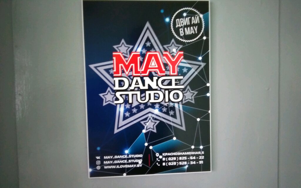 MAY dance studio, the best studio in the city, excellent coaches, a large number of directions, the studio has existed for more than 10 years, friends have been working there and bring prizes from international competitions every year, photo shoots and concerts are often held, it is very useful for both children from 3 years old and teenagers, I advise everyone!