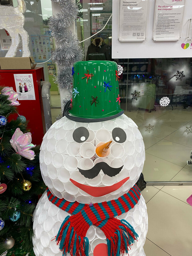 Очень хороший магазин. Всегда чистота-красота, на полочках порядок, консультанты приветливо встречают, всегда расскажут об акциях, подскажут, что где стоит. Недавно снова посетила магазин, и меня встретили елочка 🌲 и вот такой шикарный снеговик⛄️, который девушки сделали сами 🤩 Девушки, спасибо за новогоднее настроение 🥳 снеговик меня просто покорил 🥰
