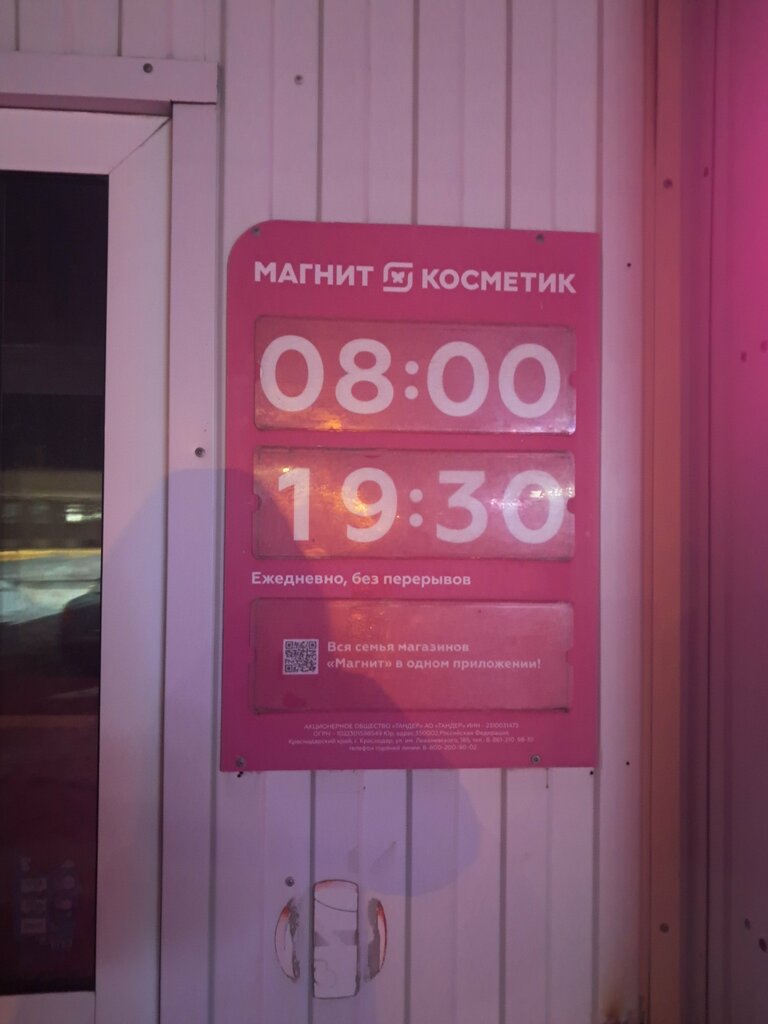 Единственный минус часы работы, что до 20:00. Но сам магазин очень большой с большим ассортиментом товаров