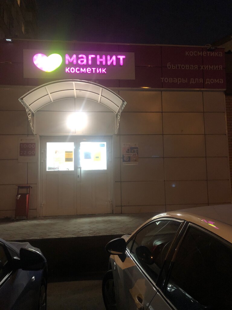 Магнит косметик: Расположение на торце здания. Зайдя внутрь здания обнаружите лестницу которая ведёт на верх. Персонал: Вежливый и общительный. Подскажет вам информацию при выборе товара (если нужно.) Кассы: Обычная и экспресс Расчёт: Наличные, карта. Очередь: Нет Состояние магазина: Чистый, очень много разного товара (нашла то, что нет в других магазинах) светлый, приятный запах, много разных скидок. Я осталась довольна покупкой.
