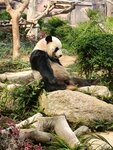 A great park. Two pandas in large enclosures. There were a lot of people. The Chinese squealed with delight. There is a red panda nearby. There is a small zoo and a park on the mountain nearby.