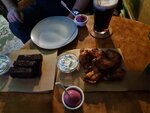 Отличный паб, большой выбор хорошего пива, у нас открытие года: закуска в соусе (горох жареный с маслом) это очень вкусно и необычно. Пирог отличный, крылья на 3+, гренки тоже на 4. Само место атмосферное, возвращаюсь не первый раз, один из лучших пабов в Краснодаре.