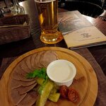 * вкусное ирландское пиво (нет в меню) * посикунчики (местное блюдо) - стоит однажды попробовать : вареники из хлебного теста, подобно карельским калиткам -- очень низкий сервиз ( за клиента не держаться, т к единственное приличное место в городке), очень медлительная кухня : посикунчики готовили час, суп в итоге отказались приносить - отдали соседнему столику для группы из 6 человек -- курят в зале -- располагается на отшибе, окраине городка. нужно приложить усилие добраться вывод : туристу можно зайти на 1 раз из-за безвыходности