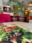 Пришли в воскресенье, не было ни домашних лимонадов, ни морсов, все выпили в субботу, по словам официантки. Салаты неплохие, вкусные, но без прямо вау эффекта. Наггетсы в детском меню не похожи на наггетсы, большие и пережаренные, но бургер ребёнку понравился. Садж из телятины красиво поданый, но вообще невкусный, очень жесткое, резиновое прямо мясо, очень острые овощи в центре. Единственное вкусное - овощи с гриля по краям. Детская комната есть, но совсем крошечная. Впрочем дети нашли чем себя занять, а потом просто смотрели там мультики.