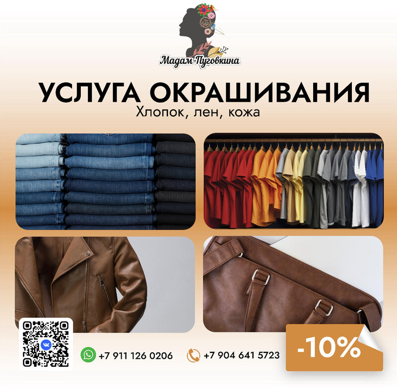 Любимую кожаную куртку прокатал по пяти разным ателье города. Безрезультатно. Никто не берется отреставрировать. Только у Мадам очень приветливый мастер Инга сделала мою куртку новой. Я счастлив. Ателье мои аплодисменты.