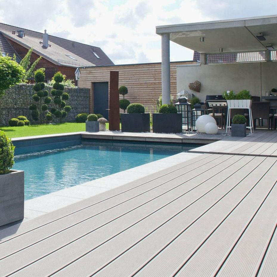 Террасная доска двухсторонняя: глубокое тиснение под дерево 3D/широкий вельвет. Цвет: графит Длина: 4 м., 6 м.
