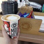 Good coffee, pleasant barista, fast service, average prices, there are both hot and cold drinks. I really like the style of the coffee shop - I kept the cup in my collection.