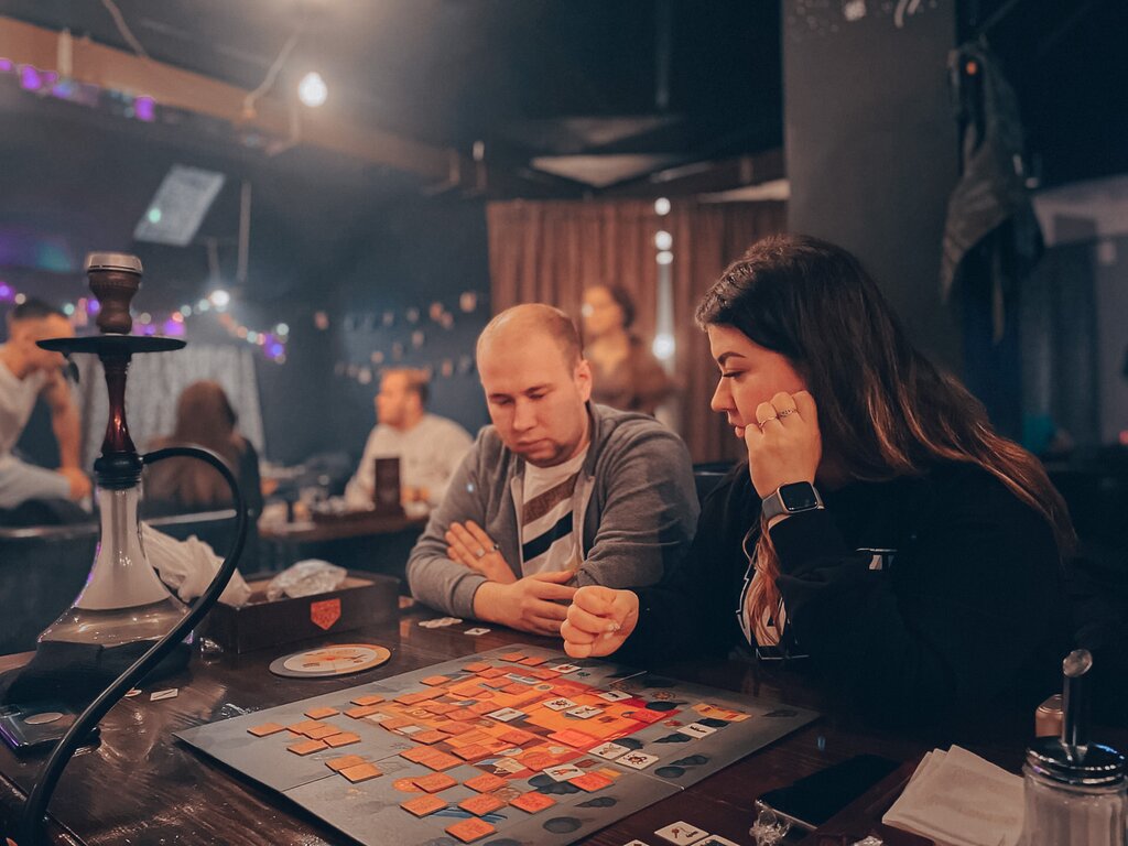 Features institution:board games, bar counter