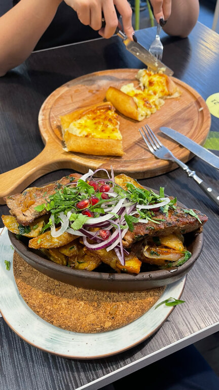Супер классное место !!! Уютно , вкусно и атмосферно !!! Очень веселый персонал )) хорошие порции и приятные цены!!!! Кафе находиться в деловом квартале , а приятно как дома 🩵рекомендую однозначно !! Есть доставка , по месту и Яндекс! Еще там классно отметить праздник 🥳 Шикарные хинкали , суп чихиртма , цезарь , мои фавориты 😋хачапури и пирожные отвал башки 🤩🤩🤩рекомендую