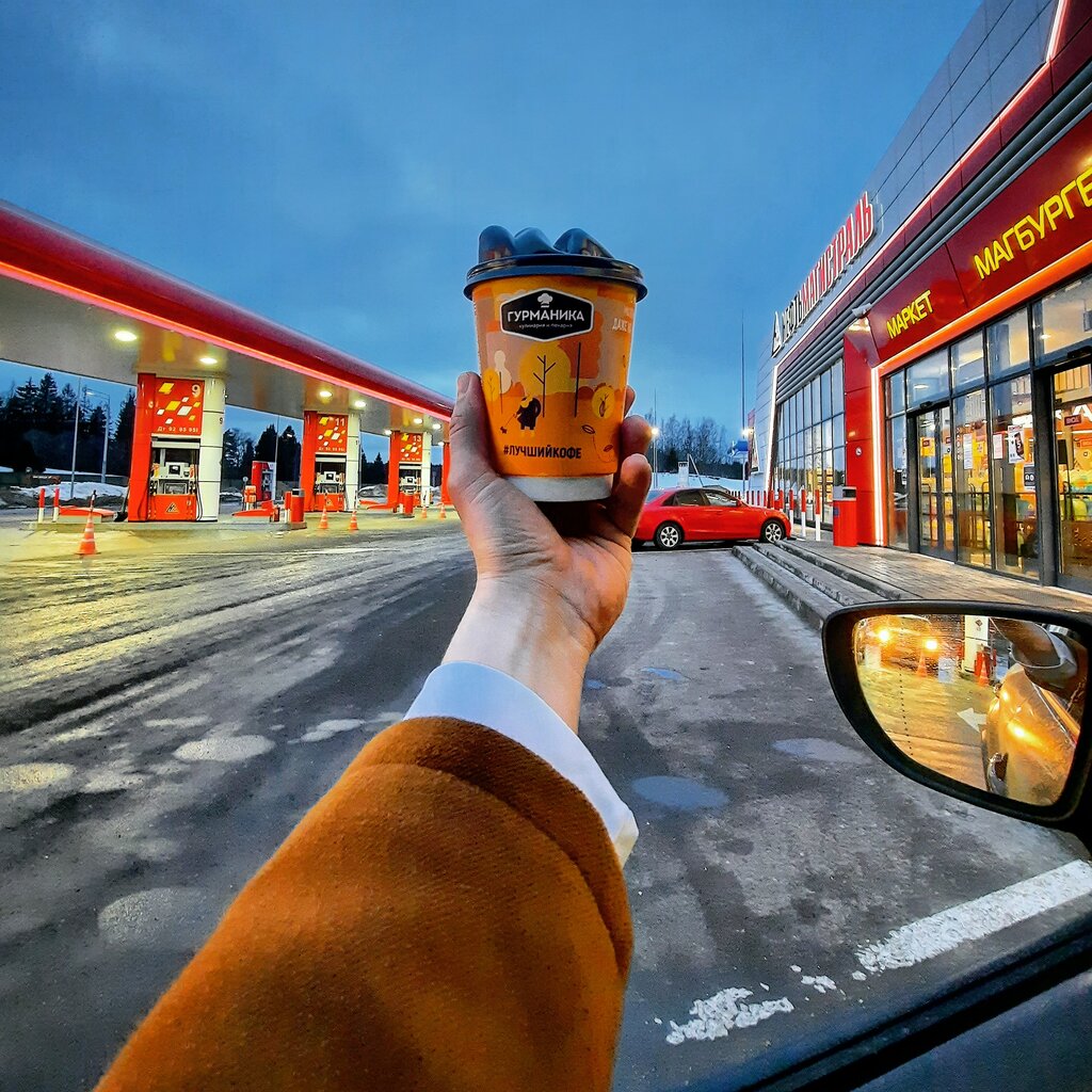 Удобное расположение и въезд. Помимо заправки, можно помыть машину. Вкуснятские бургеры и шаурма шикарная. Большой зал со столиками, удобными диванчиками и стульями. Многообразие готовой еды, и необходимых товаров. Много заправочных колонок. Говорят, через приложение приличные бонусы/скидки на бургеры, но у меня приложение не открылось. С удовольствием сюда заезжаю.