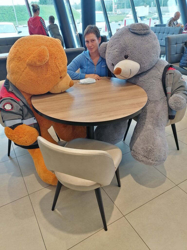 Здание кафе очень понравилось. Разделено от оплаты заправки. Мягкие диванчики, чистенько, приятно находиться здесь. Брали раф с соленой карамелью, неплох. Бургер BBQ мне понравился, лучше чем в маке, по крайней мере, а вот муж взял себе Мега бургер и как говорится, ожидание и реальность. На картинке двухэтажный бургер, а по факту обычный с котлетой, а сверху нее кружок ветчины из индейки и снизу ломтик бекона, муж расстроился немного( но в целом, вполне съедобно, местами даже вкусненько) Неплохой ассортимент сладкой выпечки, готовых блюд с собой. В общем и целом кафе порадовало)