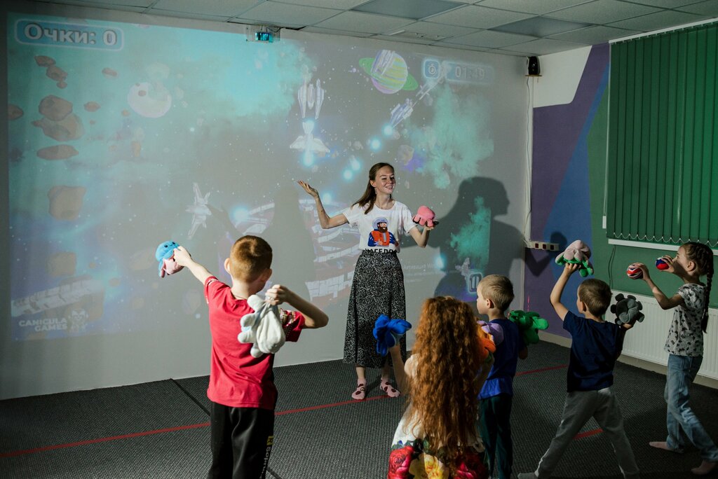 пн-чт 13500р пт-вс и праздничные дни 14500р -2ч 15 м игровая игровая программа на интерактивной стене с аниматором -3 перерыва по 15 мин -98м2 игрового пространства. Игровая и чайная зона изолированы друг от друга; -Аниматор от начала и до конца