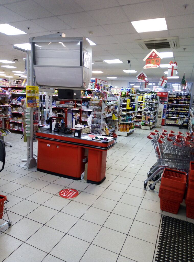 Продавцов что бы что-то узнать не найдёшь, куча касс работает одна, ценники не актуальные. В овощах вообще ужас.... В общем не очень.