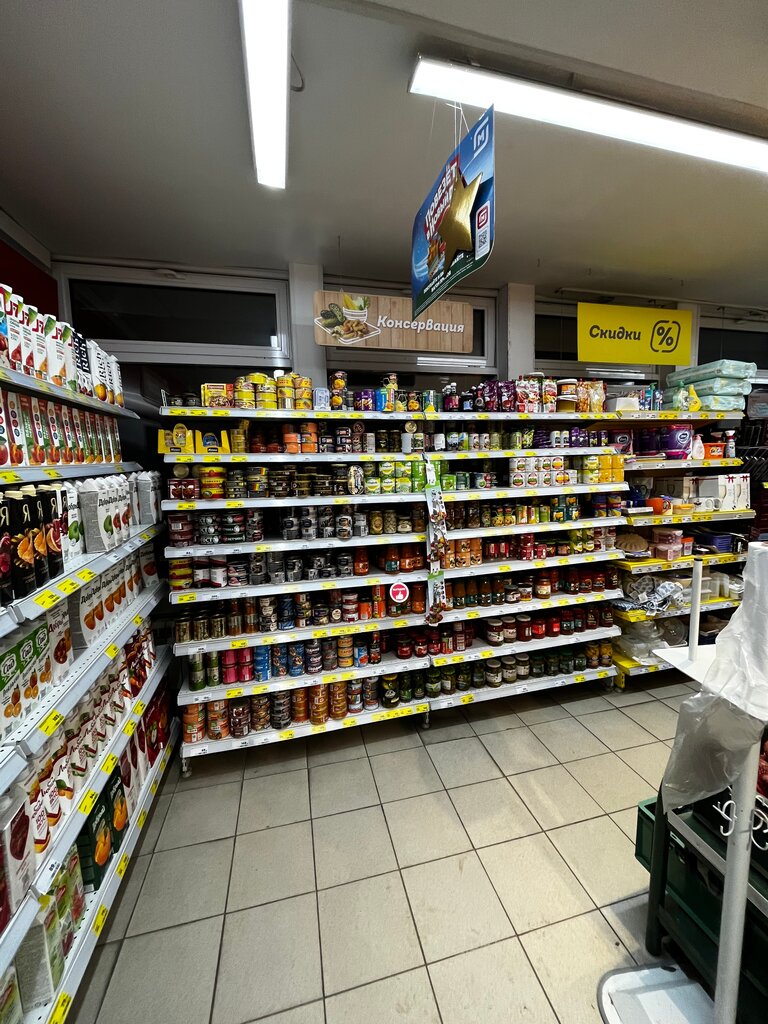 Хороший магазин,как и вся сеть,есть все необходимое,жаль только персонала нехватает,нужен продавец срочно,тк не успевают переклиить ценники,убрать прошедшие акции ,но помогла разобраться,появившаяся в зале приятная девушка,наверное сотрудник магазина,к сожалению не знаю должности.желаю удачи найти продавца этому магазину,тк трафик довольно неплохой ,нужно успеть всех обслужить,работали 3 кассы в субботу,собралась очередь,наверное нужно выводить администратора или директора в выходной день и в пиковые часы,когда идет трафик.желаю удачи и не нужно ехать в Москву искать работу,в городе много есть мест.
