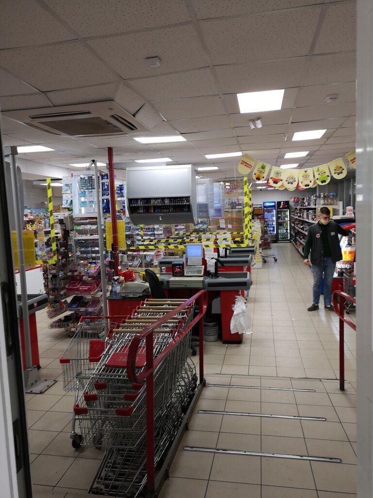 Не хочется, конечно, писать негативный отзыв, но уж как есть... Грязновато, тесновато, расположение полок с товарами неудобное, после реконструкции ничего не изменилось, только полки переставили. Проходы постоянно чем-то заставлены, хотя и так не очень просторно. Бывает, что к стеллажу с крупами и макаронами не подойти. Холодильник с мясом вызывает большие вопросы. На вид не очень чистый и иногда воняет. Ассортимент обычный, в принципе, всё необходимое есть. Корзины тоже грязные. Их вообще когда-нибудь кто-нибудь как-то моет? Думаю, что нет. Фрукты-овощи бывают нормальные, а бывают и не очень, впрочем, как и везде. Но самый раздражающий фактор - это отсутствие ценников. А те, которые есть, могут не соответствовать. Да, кассир, предлагает пробить товар по цене, указанной в ценнике, но при этом ты сам должен сходить и принести ценник, а это не всегда удобно, потому что сзади стоит и недовольно дышит тебе в спину очередь))). Из плюсов - вежливый персонал, вроде бы адекватно реагируют, когда начинаются разборки с ценниками. После реконструкции появился отдел с недорогой выпечкой, что радует. Но в целом всё грустно. Возможно, не хватает сотрудников, или это их политика , потому что в других магазинах этой сети такая же печальная картина. Из-за всего этого (в основном, из-за бардака с ценниками) стала очень редко туда ходить. Очень жаль.