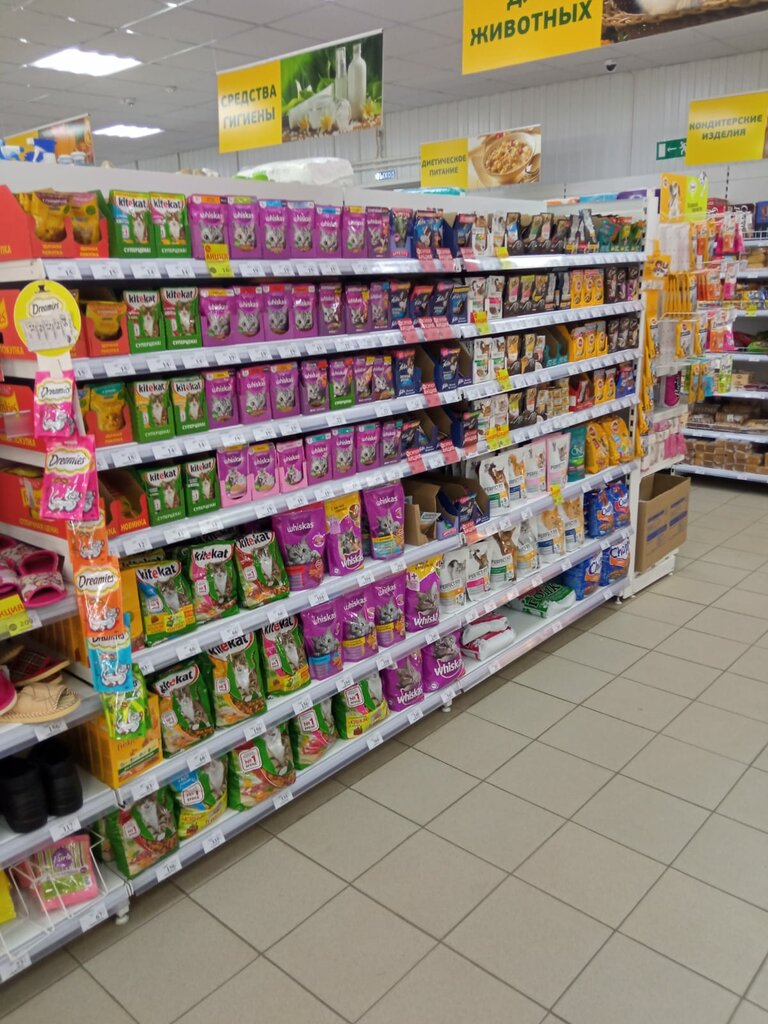 Хороший магазин, всё есть, одно но, грязно, полы в отвратительном состоянии, ручки холодильного оборудования жирно-грязные, в тележках мусор и грязь