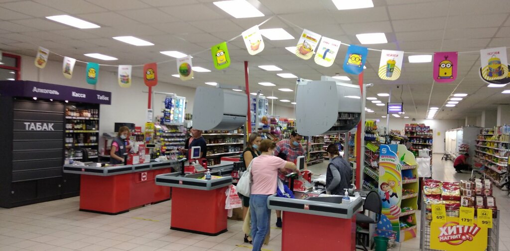 Продавцы естт грубые,часто очередь на кассе,имеются 3 кассы,но в работе 2 или 1 касса, здороваются через раз, одна продавец на кассе всегда отпускает молча,будто немая, табло с ценами не высвечивается