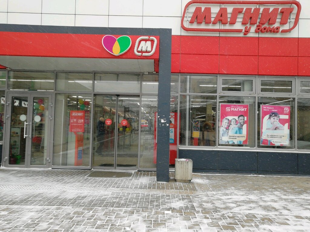 Одна из самых удобных точек сети магазинов "Магнит", расположение полок великолепноое. Удобно, просто, не заплутаешь в них. Ещё, вкусная выпечка, особенно улитки с мясом, с шпинатом и улитка с корицей, прям очень вкусная, особенно, когда свежеиспечëнная. Сотрудники вежливы, помогают)