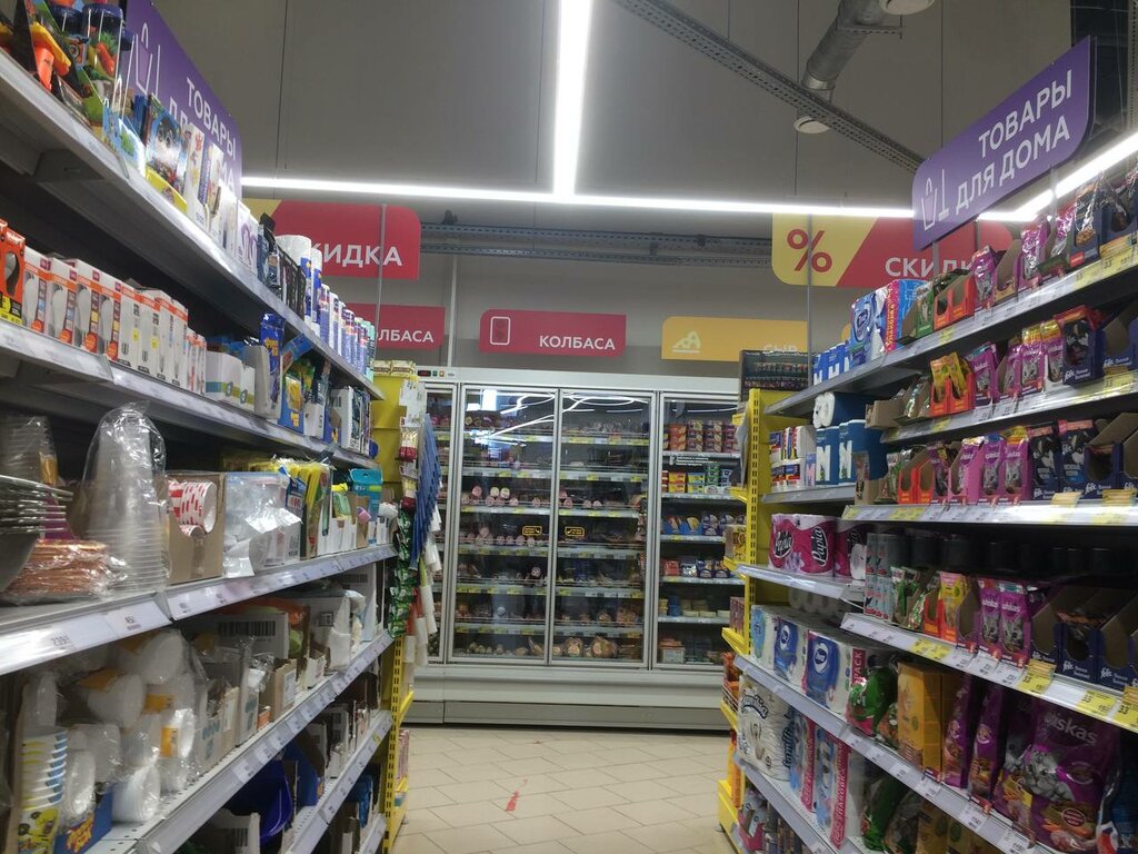 Магазин новый, большой по территории и по ассортименту. Была и днем и вечером народу не много, кассы справляются. Для собачников сделана особенность магазина, что можно с животными заходить.