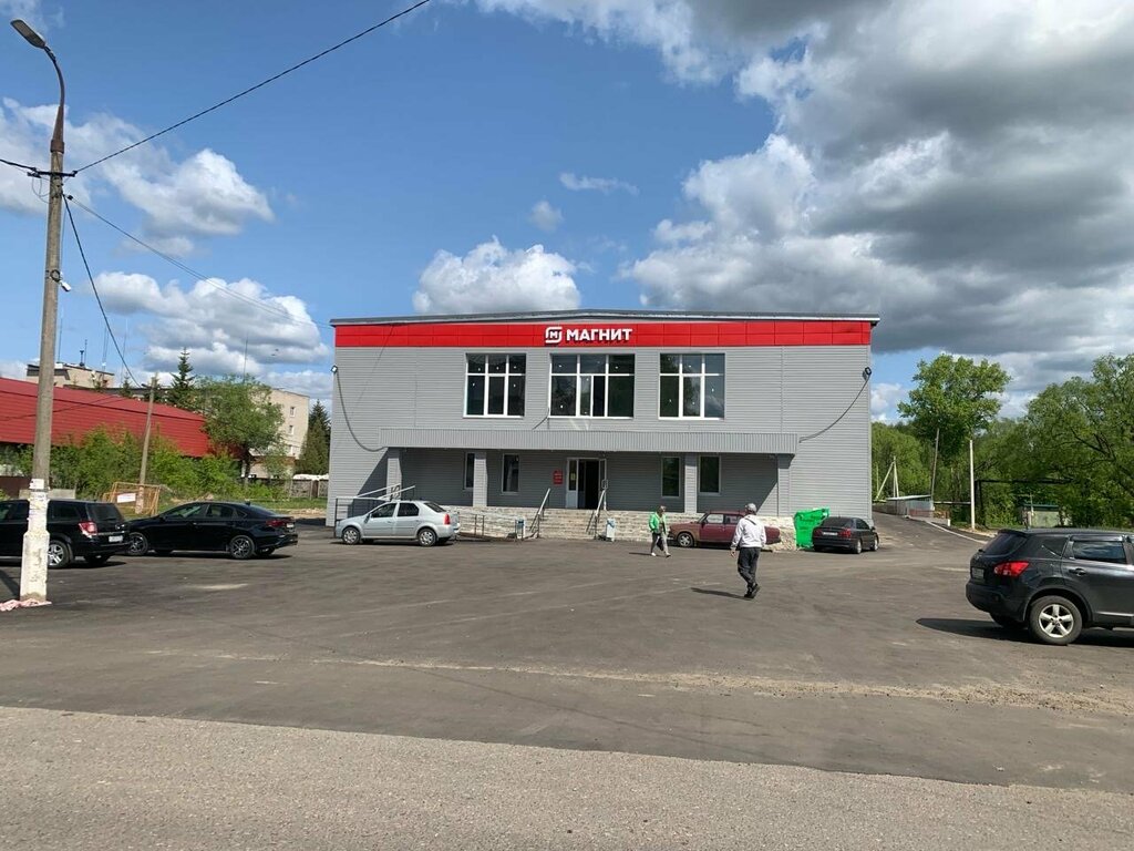 Магнит. Хороший просторный магазин шаговой доступности. Широкий ассортимент товаров. Рядом автобусная остановка, буквально 50 метров.